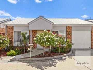 Set within a peaceful and well-maintained over 55's retirement village, this charming, low-maintenance residence offers comfort, practicality and a welcoming community lifestyle. Reverse cycle heating and cooling ensures year-round comfort, while ceiling fans provide additional airflow throughout the home. Upon entry, the home opens into a spacious light-filled lounge and dining area, creating a warm and inviting central living space ideal for relaxing or entertaining visitors. The adjoining kitchen is well positioned and functional, offering ample bench space and storage while remaining connected to the main living zone. Accommodation includes two well-proportioned bedrooms. The master bedroom features a walk-in robe, while the second bedroom includes a built-in robe and sits conveniently near the central bathroom and laundry combination, designed for ease of use and everyday practicality. The thoughtful layout ensures comfortable living while maintaining privacy between the sleeping